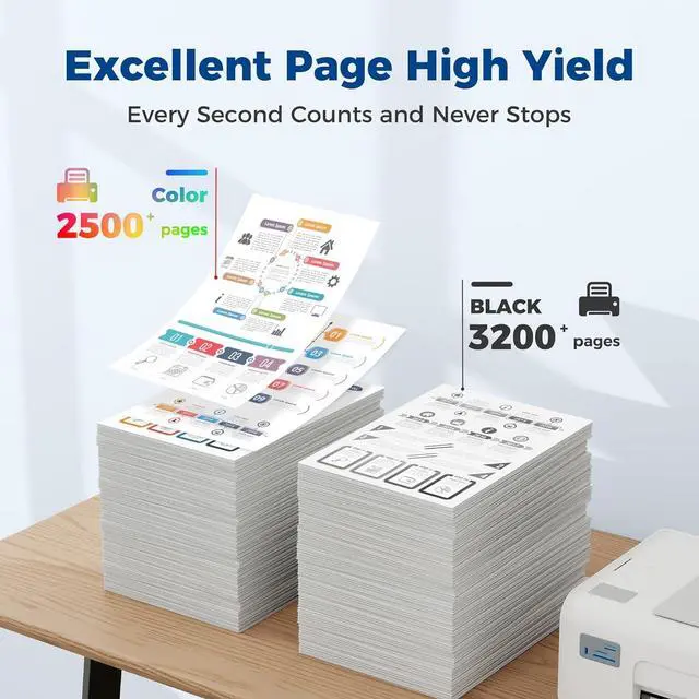 High Page Yield: Our 202X toner cartridges offers high-yield performance, delivering up to 3,200+ pages per black cartridge and 2,500+ pages per color cartridge (based on 5% coverage of A4 paper), perfect for high volume printing needs of businesses.