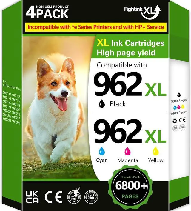 Incompatible Printer: 962xl ink cartridges combo pack incompatible with *e series printers with *e Series Printers and with HP+ Service, such as OfficeJet Pro 9010e 9012e 9014e 9015e 9018e 9019e 9020e 9022e 9025e 9028e printers