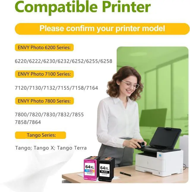Compatible with: Envy Photo Series 6200, 6220, 6222, 6230, 6232, 6234, 6252, 6255, 6258, 7120, 7130, 7132, 7134, 7155, 7158, 7164, 7800, 7820, 7822, 7830, 7855, 7858, 7864, 7832 ENVY Inspire Series: 7200e, 7255e, 7900e,7950e, 7955e, 7958e Tango Series: Tango, Tango X, Tango Terra