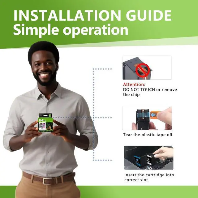 Latest Smart Chip:These 64xl cartridges are equipped with the latest smart chip that is perfectly compatible with your printer.