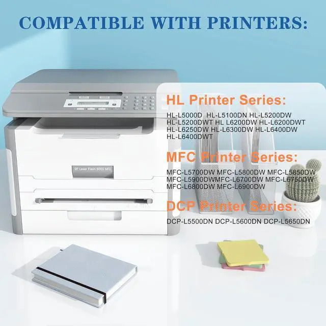 Compatible With Printers: HLL6200DW HLL5000D HLL5100DN HLL5200DW HLL5200DWT HLL6200DWT HLL6250DW HLL6300DW HLL6400DW HLL6400DWT; DCPL5500DN DCPL5600DN DCPL5650DN; MFCL5700DW MFCL5800DW MFCL5850DW MFCL5900DW MFCL6700DW MFCL6750DW MFCL6800DW MFCL6900DW and more.
