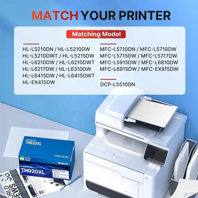 Latest Chip Verison: Our TN920 XL toner uses the latest upgraded chip to ensure compatibility with Brother MFC-L5915DW MFC-L5710DW Printer