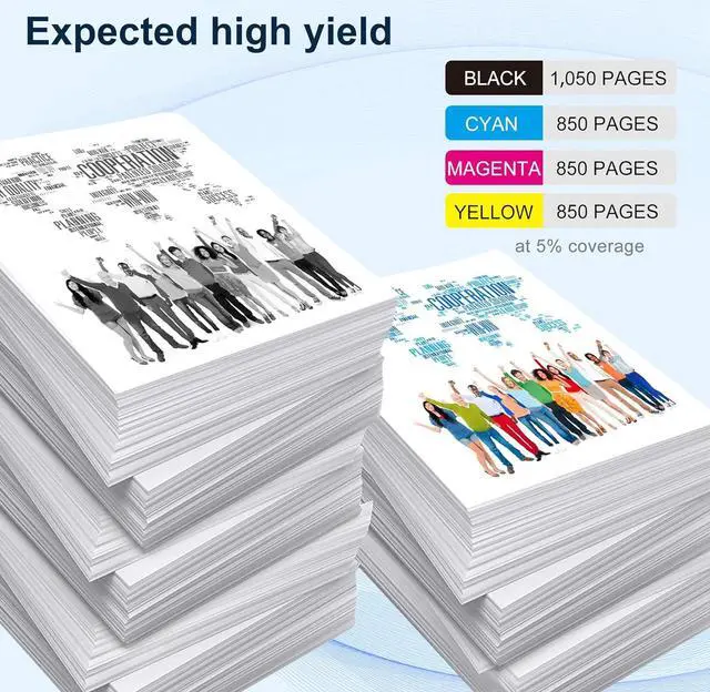 High Page Yield: Up to 1050 pages per black toner cartridge and 850 pages per color toner cartridge (at 5% coverage may vary by type of use)
