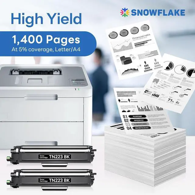 Page Yield : Up to 1,400 pages per TN223 TN-223 Black Toner Cartridge (at 5% coverage, Letter/A4).