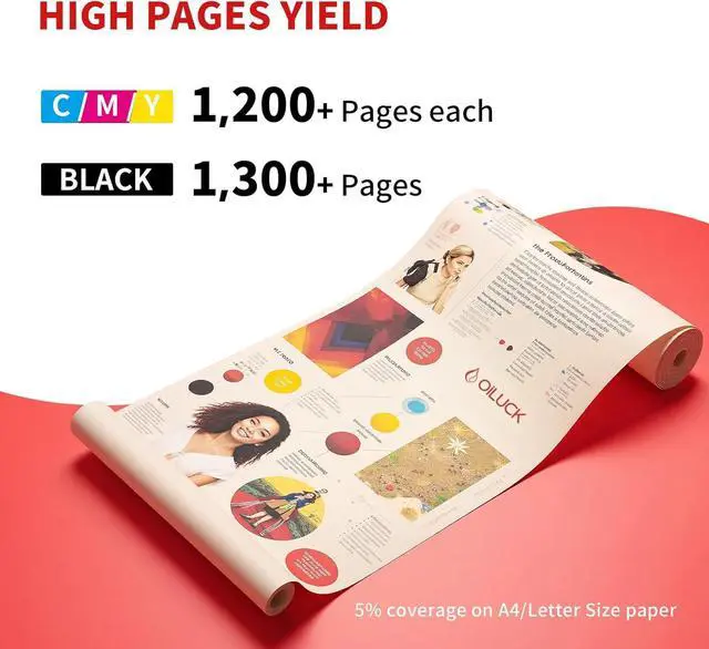 High YieldUp to 1,300 Pages per 075 Black Toner Cartridge,1,300 Pages 075 Cyan / Magenta / Yellow Toner Cartridge at 5% coverage of Letter Size / A4 paper