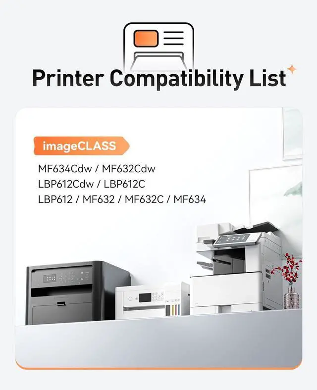 Compatible Printers: Compatible with Canon imageCLASS MF634Cdw MF632Cdw LBP612Cdw LBP612C LBP612 MF632 MF632C 634C MF634 Toner Laser Printer.