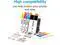 Cartridge yield (approx.): 1,200 pages black, 1,000 pages cyan, 1,000 pages magenta, 1,000 pages yellow (5% coverage tests show 50% less ink waste v.s others)