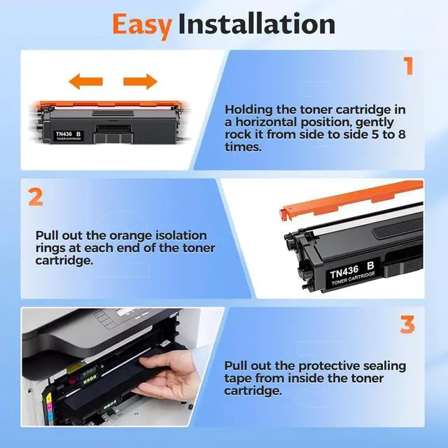 Sharp Text & Vibrant Color: These TN436 Cartridges are high-quality, allowing you to print whatever you need, including photos, documents, reports, letters, graphics, and much more. It also avoids common printing problems such as streaks, smudges, and leaking.
