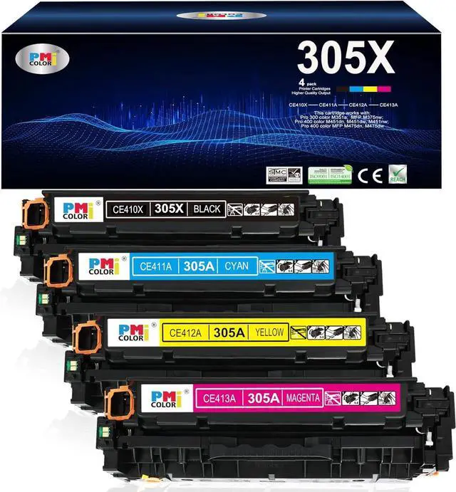 Package Include: 305X toner cartridges 4 Pack(1 Black 1 Cyan 1 Yellow 1 Magenta)