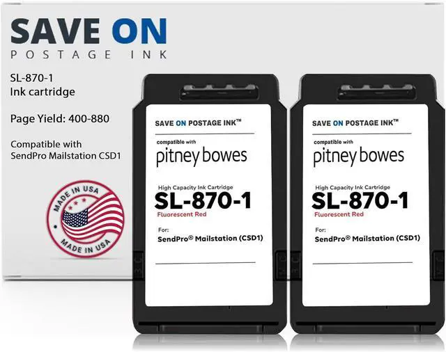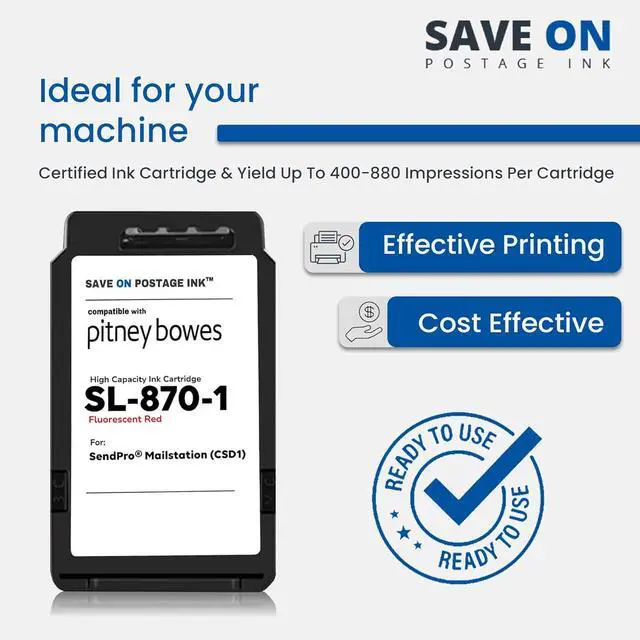 - : Our Compatible PB SL-870-1 SendPro Mailstation Red ink cartridge for printer offers an affordable way to keep your postage meter running smoothly. This color printer cartridge uses a proprietary fluorescent red formula for clear, sharp prints every time.