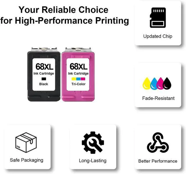 Package Contents: 1×68XL Black Ink Cartridge 7FP22TN, 1×68XL color Ink Cartridge