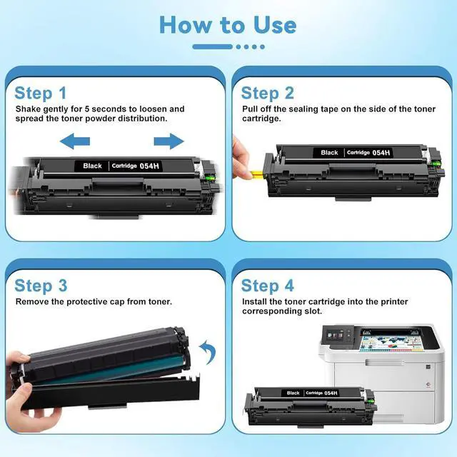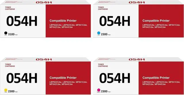 Includes 1 x Cartridges 054 H Black Toner, 1 x Cartridges 054 H Cyan Toner, 1 x Cartridges 054 H Magenta Toner, 1 x Cartridges 054 H Yellow Toner - 4-pack set with 1 user guide