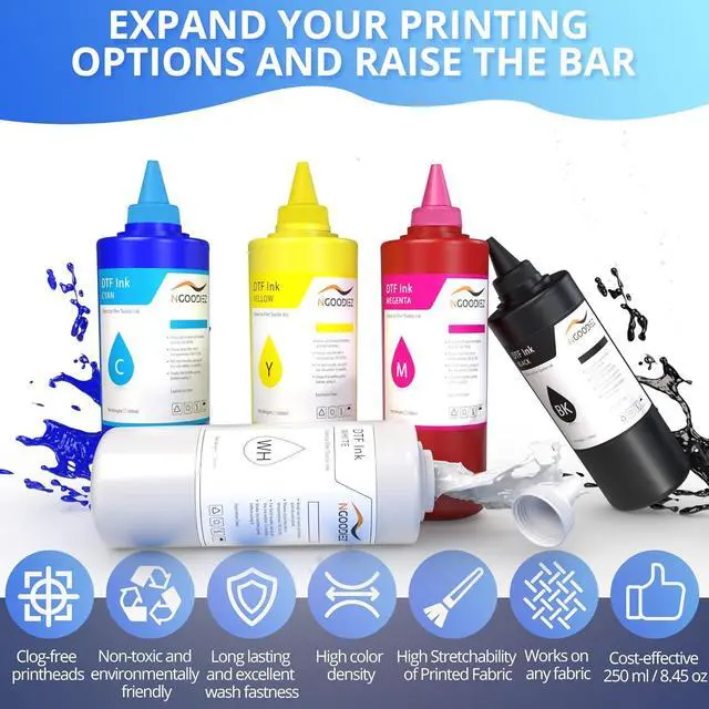 Use with ease and confidence that your color will turn out fantastic with our latest premium A+ grade DTF ink. Enjoy bright and vivid results and high heat transfer printing rate with our smooth anti-clog ink