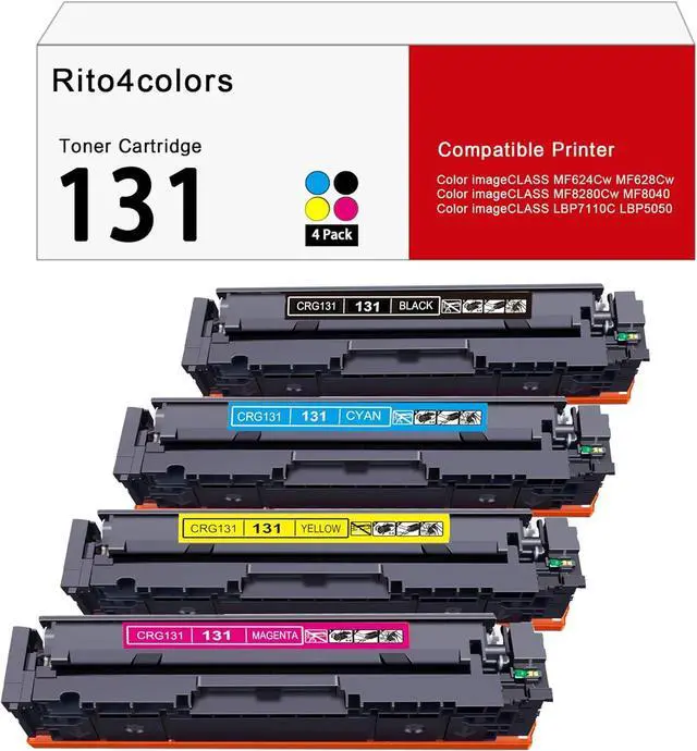 What in the box: rito4colors 131 toner replacements for Canon 131 MF8280cw toner cartridge( Black, Cyan, Magenta, Yellow)