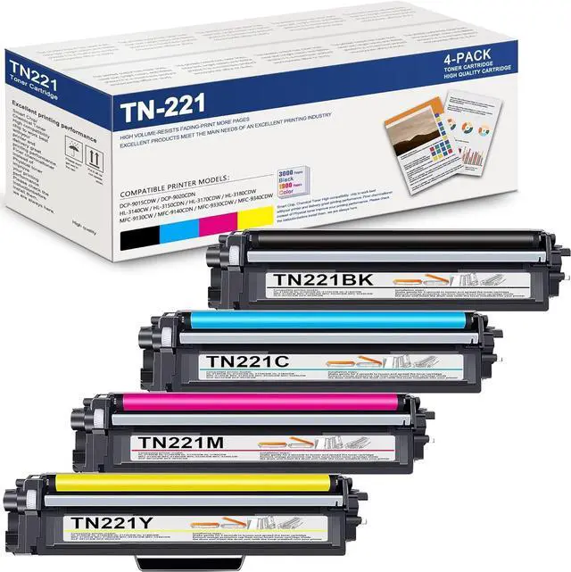 Package Contents: 4 pack new TN221 TN225 Toner Cartridges (1Black+1Cyan+1Magenta+1Yellow)
