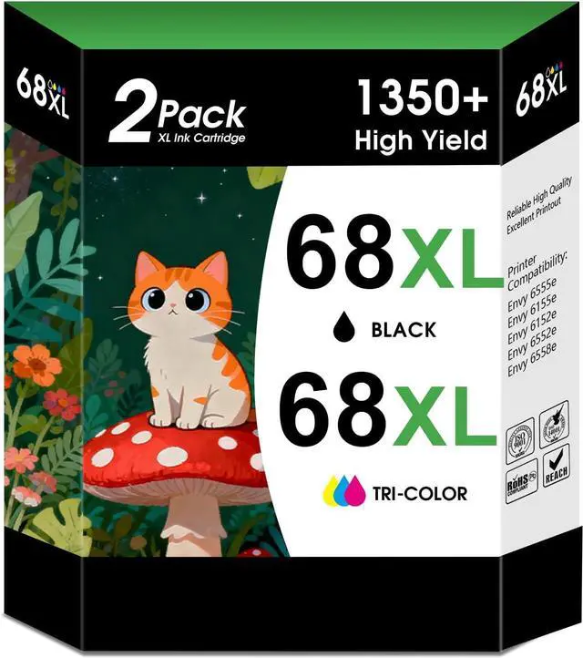 Printer Compatibility: This 68e 68xl black and color combo pack ink cartridges is compatible for fit for fit for Envy 6500e Series: 6552e/6555e/6558e/6520/6520e/6530e/6531e/6532e