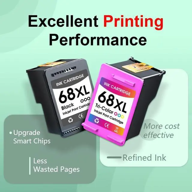 Strict Quality Control: Each 68e 68XL ink cartridge was tested with the strict quality procedure to ensure compatibility with your printer and provide your printing with vivid color and sharp text.Our ink cartridge features a sealed design with internal negative pressure, effectively preventing ink leakage