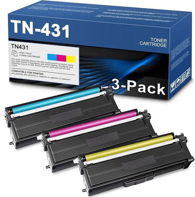 Package Contents: 3 pack new TN431C TN431M TN431Y Toner Cartridges (1Cyan+1Magenta+1Yellow)