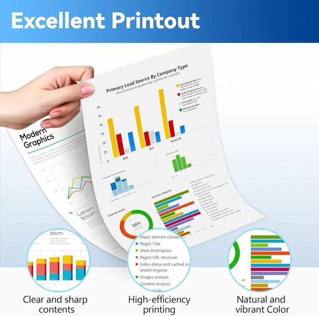 Advanced printing technology ensures that every sheet of paper is rendered with clear, sharp images and text, Vibrant colours and deep blacks
