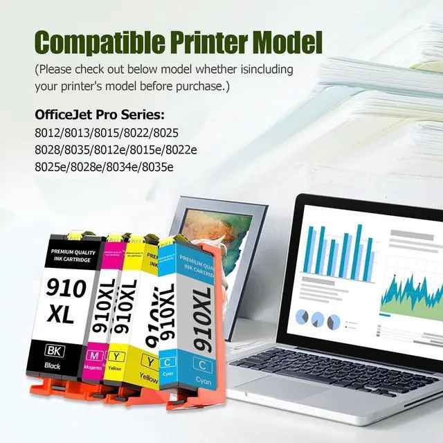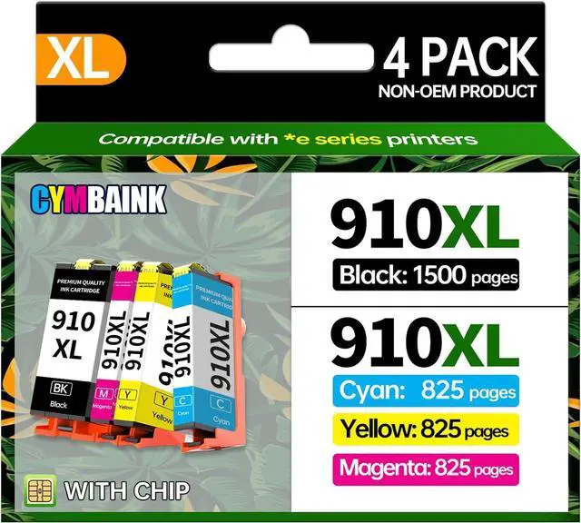 Includes 4 Pack 910XL Ink Cartridge:(910XL Black Ink Cartridge X1, 910XL Cyan Ink Cartridge X1, 910XL Yellow Ink Cartridge X1,910XL Magenta Ink Cartridge X1)