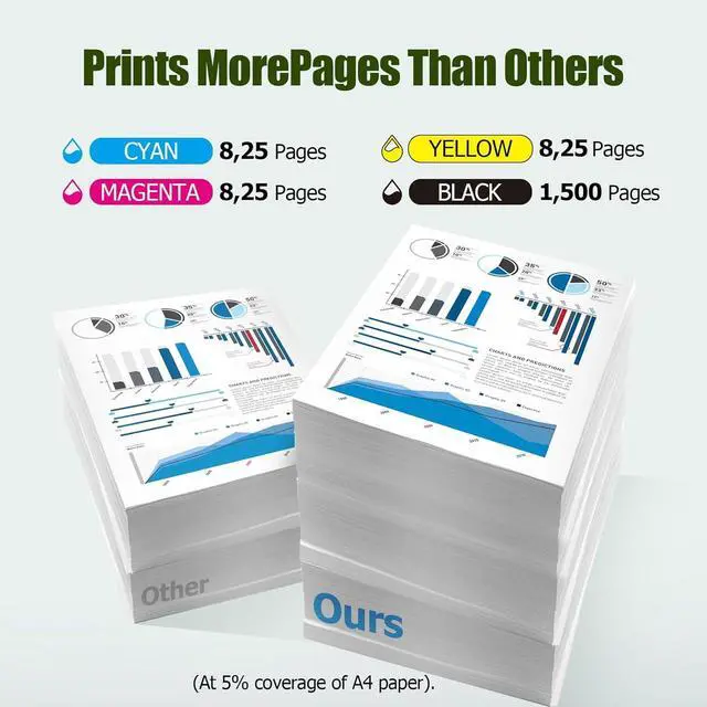 Ultra-High Page Yield: Get up to 1,500 crisp black pages and 825 vibrant color pagesperfect for heavy printing needs without frequent replacements