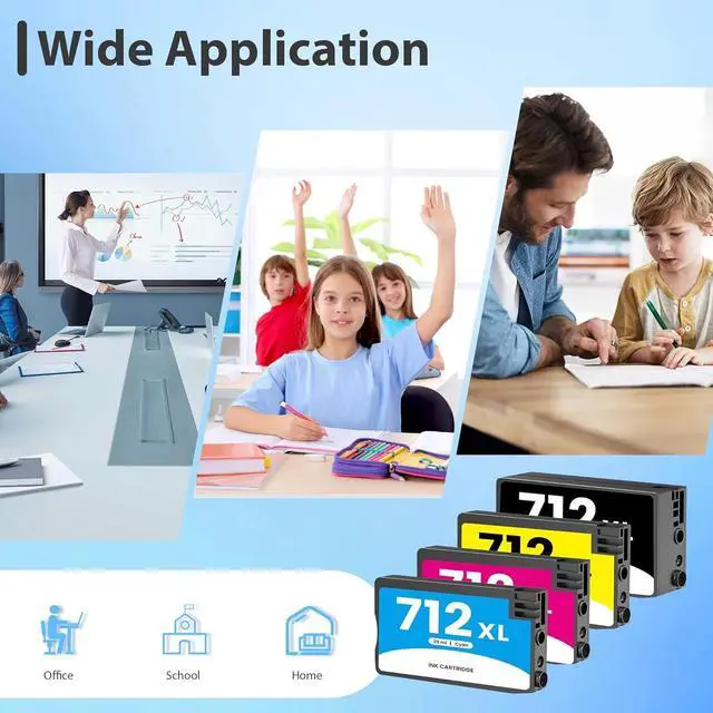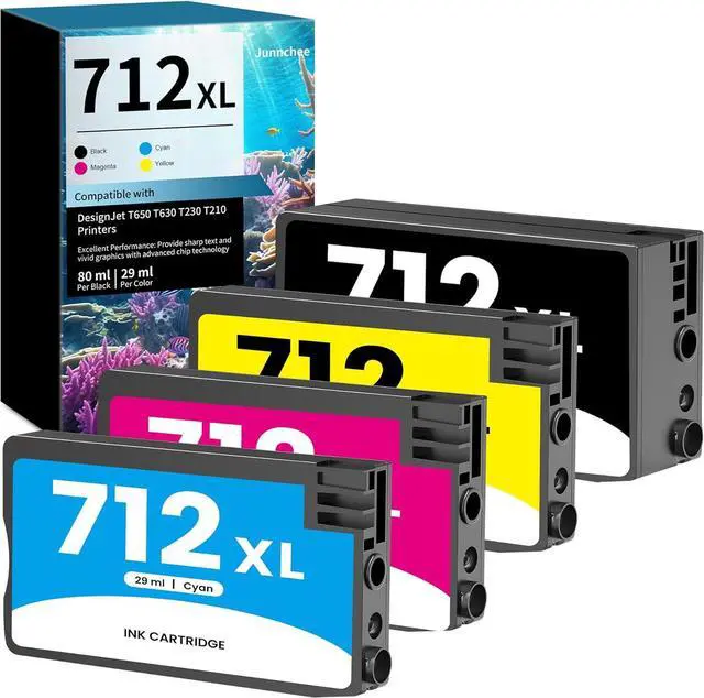 • Includes: 4-Pack, 712xl 712 Ink Cartridges High Yield (1× black 712 712xl ink cartridge, 1× cyan 712 712xl ink cartridge, 1× yellow 712 712xl ink cartridge, 1× magenta 712 712xl ink cartridge)