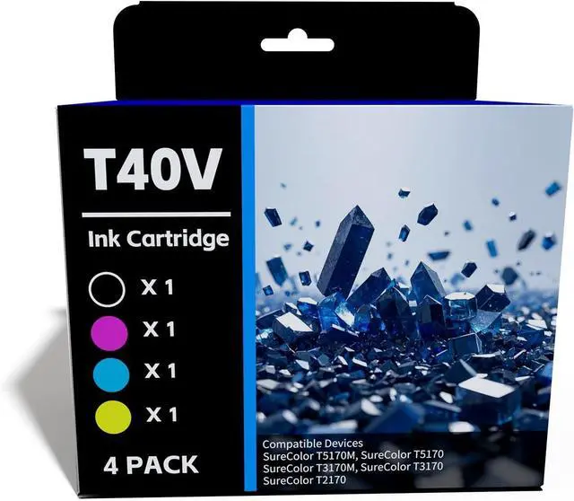 Package Contents: 4-Pack Remanufactured T40V Ink Cartridge (T40V120-Black, T40V220-Cyan, T40V320-Magenta, T40V420-Yellow)