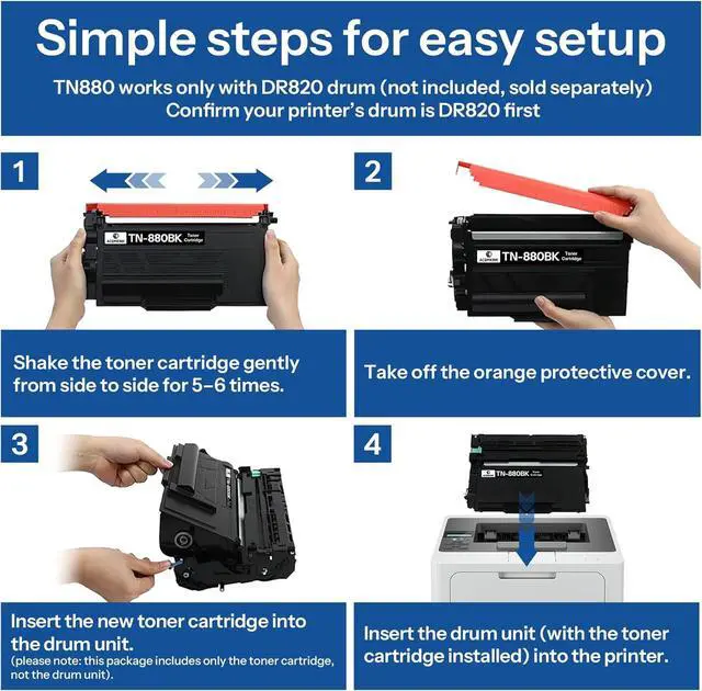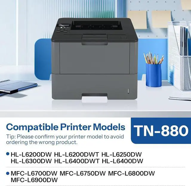 Note: This ACQMKINK TN880 TN-880 Toner Cartridge Black 2 Pack is compatible with Brother HL-L6400DW series laser printers and only works with DR820 drum unit. This package does not include the drum unit, and the drum unit needs to be purchased separately. Each toner cartridge can print approximately 12,000 pages at 5% coverage. Please make sure your printer's drum unit model is DR820 before purchasing to avoid incompatibility issues.