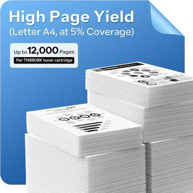 The page yield of each TN880 TN-880 black toner cartridge is up to 12,000 pages. (Based on up to 15% coverage).