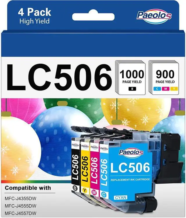 Printer Compatibility: Paeolos for Brother LC506 ink cartridge, with the newsest upgraded chip and stable quality, Paeolos LC506 ink can work weill for Brother MFC-J4355DW MFC-J4555DW MFC-J4557DW Printers. Easy to use with our LC506 LC 506 ink