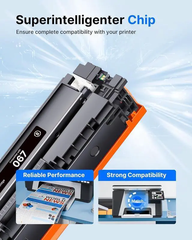 1.Latest Upgraded ChipCompatible for Canon 067 067H toner cartridges set come with UPGRADED CHIPS to ensure quality and compatibility with your printer
