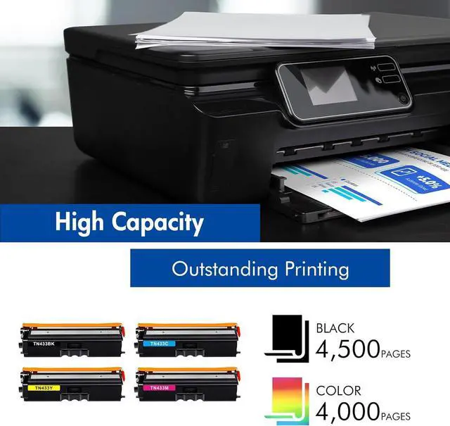 • Page Yield: 4,500 Pages (Black/TN433BK) and 4,000 Pages (Cyan/Magenta/Yellow TN433C/TN433M/TN433Y) Based on 5% coverage (Letter/A4)