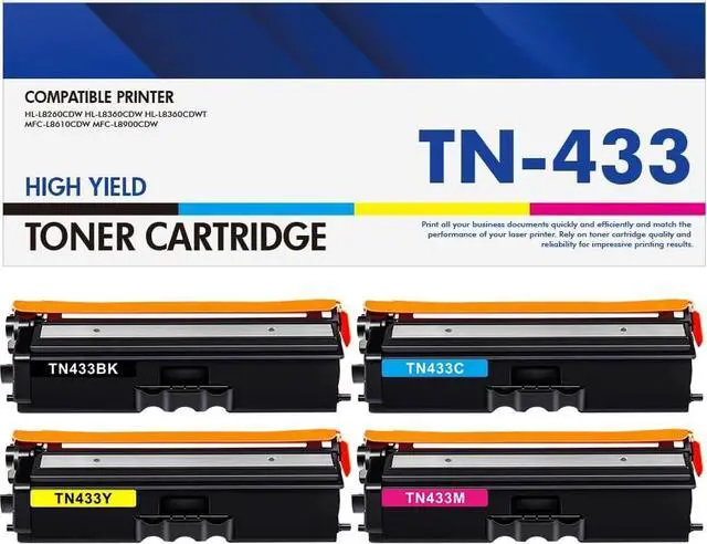 • Color: TN433 TN-433 Black Cyan Magenta Yellow 4-Pack Toner Cartridges