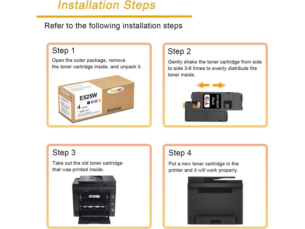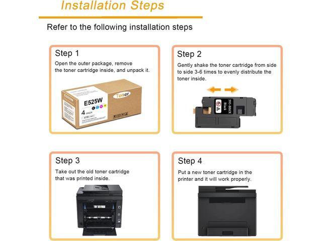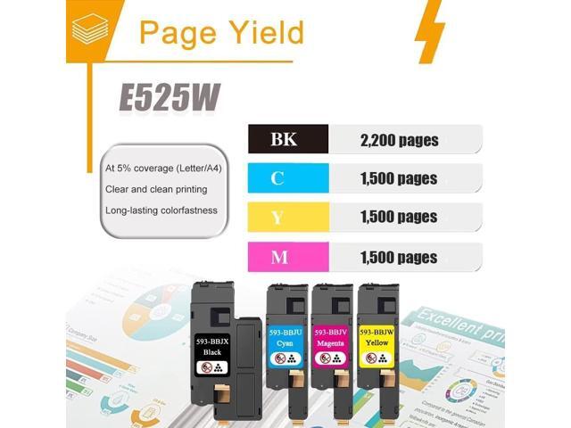 - Package Contents : ACQMKINK 593-BBJX 593-BBJU 593-BBJV 593-BBJW E525W Toner Cartridge(1Black/1Cyan/1Magenta/1Yellow).