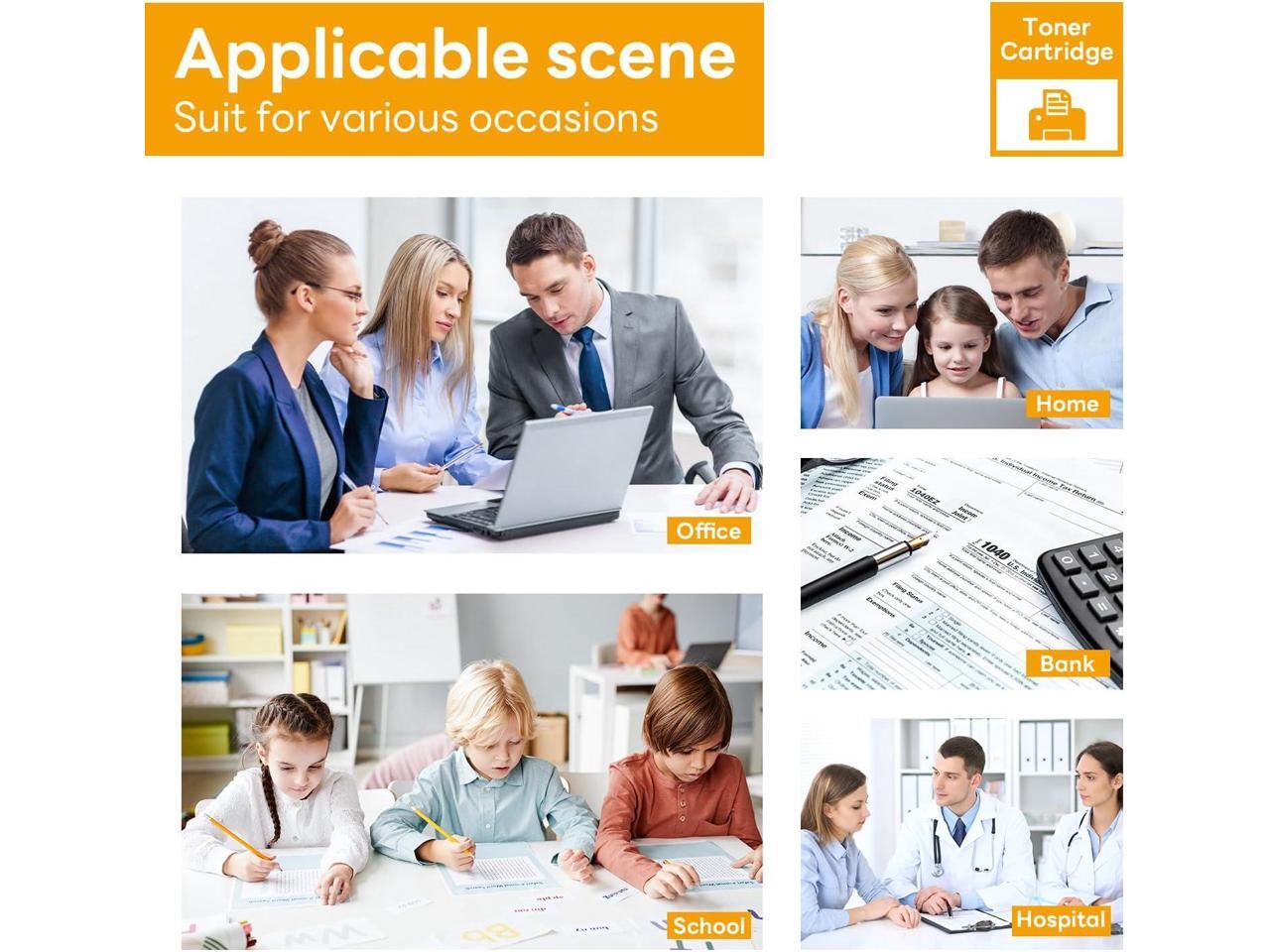 - The page yield of each color toner is up to 1500 pages, each black toner up to 2200 pages. (Based on up to 15% coverage).