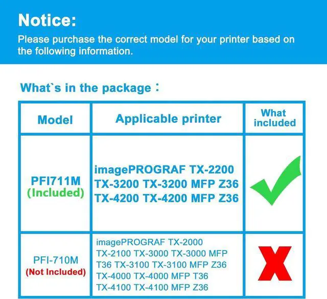Compatible Printers: Replacement for Canon imagePROGRAF TX-2200 TX-3200 TX-3200 MFP Z36 TX-4200 TX-4200 MFP Z36