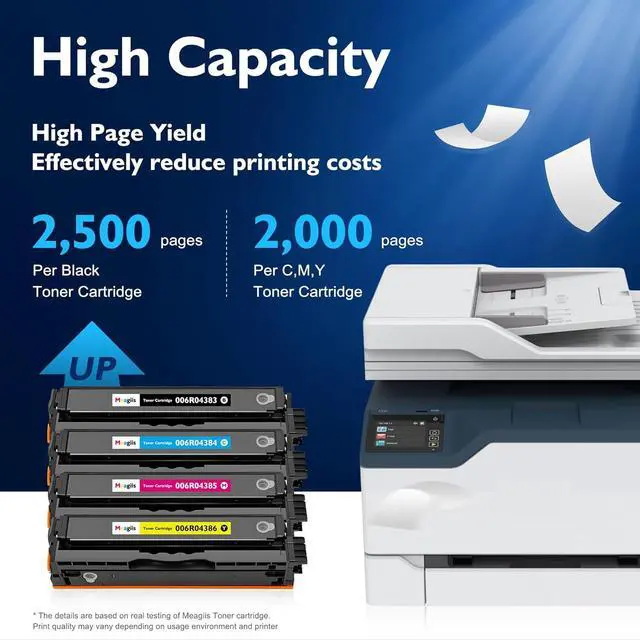High Page Yield: Up to 2,500 pages for Xerox C235 Toner Cartridge Black, 2,000 pages for Xerox C230 Toner Cartridge Color at 5% coverage (Letter/A4)