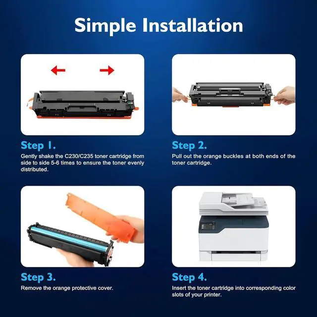 Premium Quality: Each C230 C235 C225 Toner Cartridge undergoes a strict quality testing procedure to ensure reliable, vibrant printouts and perfect compatibility with your printer. No leaking, no fading, no smudging, no streaks. High quality guaranteed.