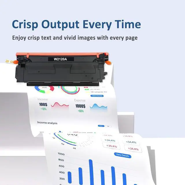 Page Yield: 5,500 pages for per 212A Black toner (W2120A) and 4,500 pages for per 212A Color toner (W2121A W2122A W2123A) at 5% coverage (Letter/A4)