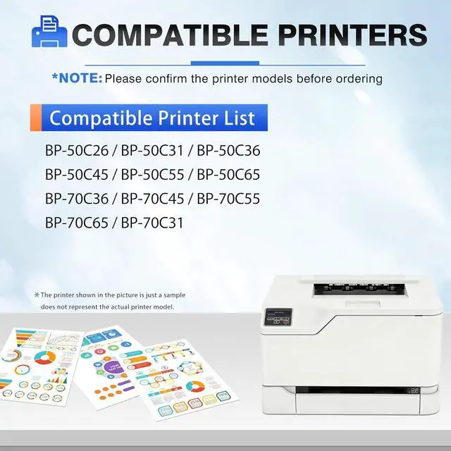 Printer Compatibility: Compatible with Sharp BP-50C26 BP-50C31 BP-50C36 BP-50C45 BP-50C55 BP-50C65 BP-70C31 BP-70C36 BP-70C45 BP-70C55 BP-70C65 Printer
