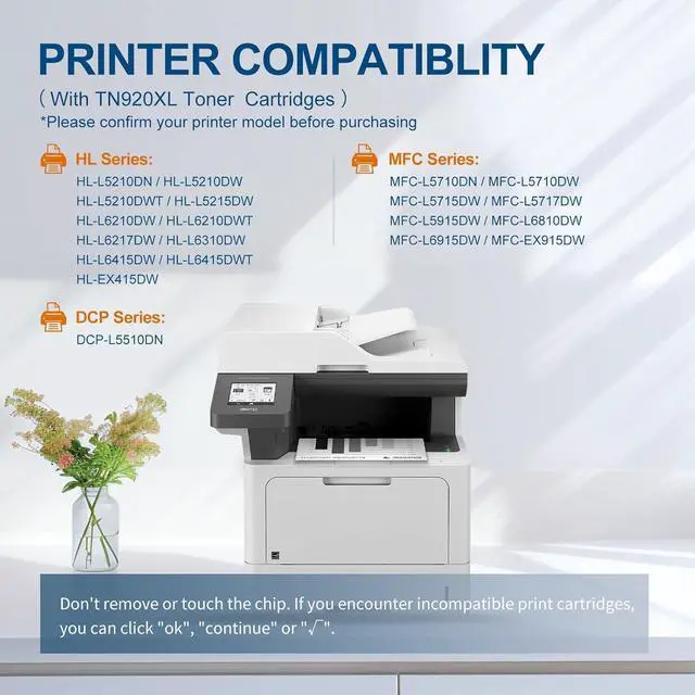Our tn920xl toner cartridge is easy to install and can be easily recognized by the printer