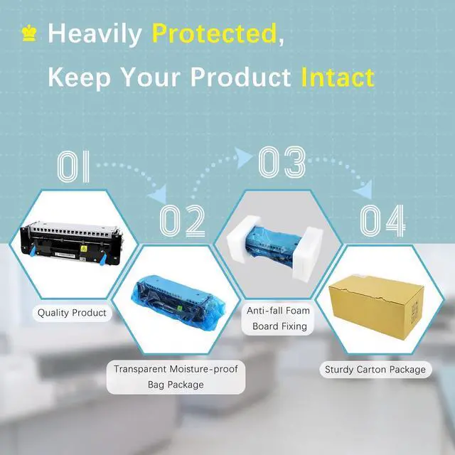 FunctionThe fuser kit replaces the faulty fuser,making your printer firm and clear,at the same time, the advanced temperature control system can accurately control the fixing temperature, protect your printer, and stay with you longer time