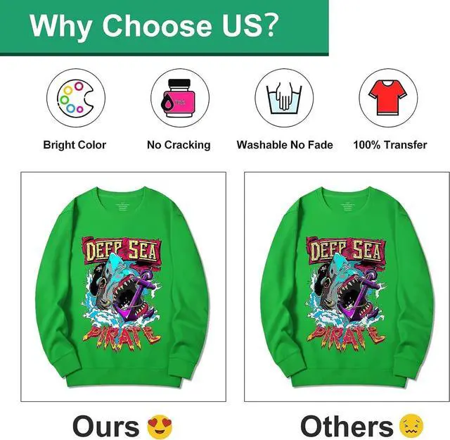VIVID COLORThe DTG DTF heat transfer ink use with ease and confidence with premium upgrade DTF ink, enjoy bright and vivid colors and high heat transfer printing rate with smooth.