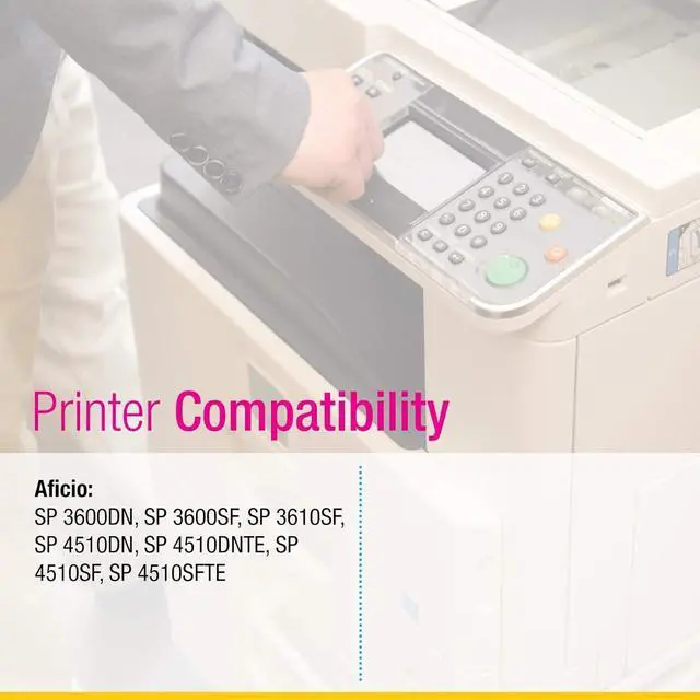 Compatible with Ricoh Printers: SP 3600DN, SP 3600SF, SP 3610SF, SP 4510DN, SP 4510DNTE, SP 4510SF, SP 4510SFTE