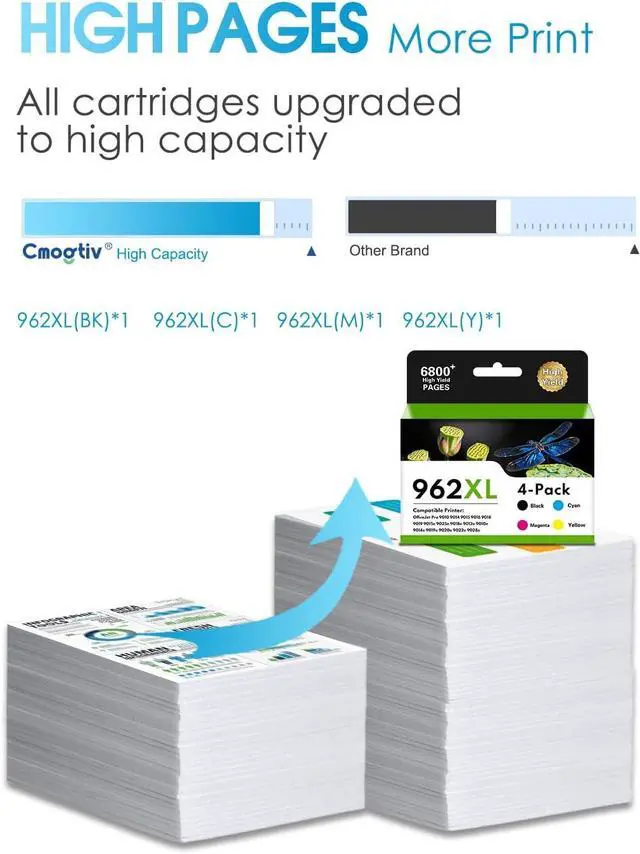 • Easy Installation and Seamless Performance: With simple plug-and-play installation, these cartridges are easy to replace and provide a smooth, hassle-free printing experience. Whether youre a beginner or an experienced user, the 962xl 4pk ensures long-lasting and consistent performance with every print