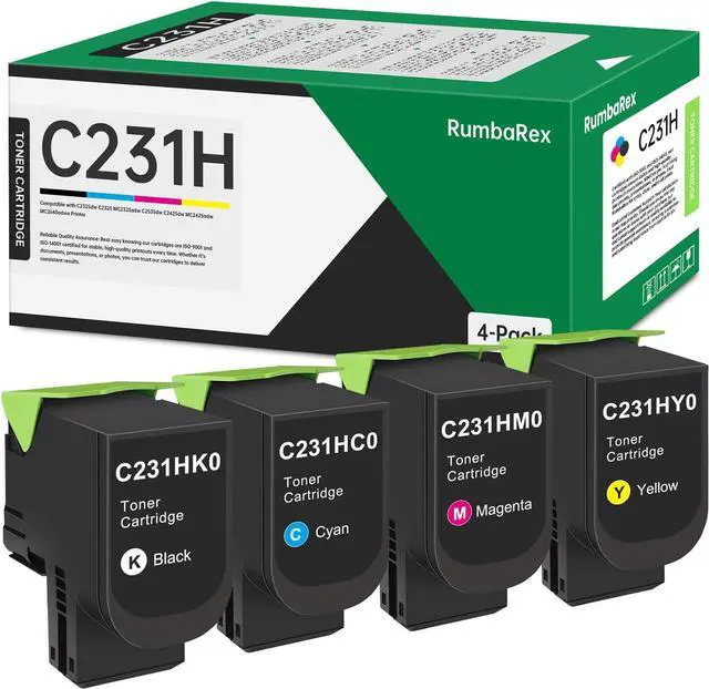 The Package Contains: C2325 C231H High Yield Toner Cartridge 4 Pack (Black Cyan Magenta Yellow) C231HK0 C231HC0 C231HM0 C231HY0
