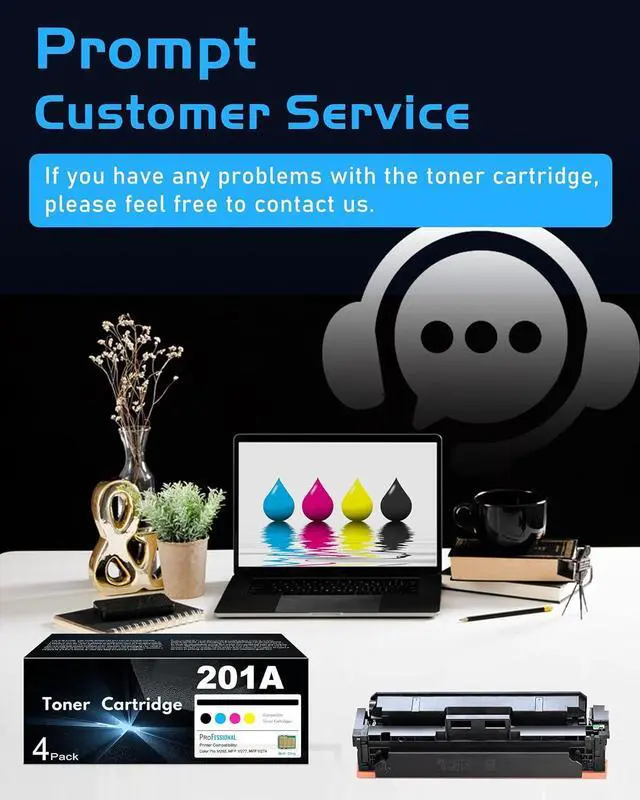 Include: 1 pack black toner cartridge CF400A, 1 pack cyan toner cartridge CF401A, 1 pack yellow toner cartridge CF402A, 1 pack magenta toner cartridge CF403A, A total of four packs 201A toner cartridge.