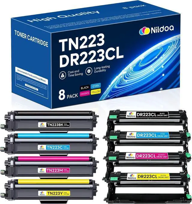 • Package Contents: Nildoa 4 Pack TN-223 Toner Cartridge & 4 Pack DR-223CL Drum Replacement for Brother TN223 Toner DR223CL Drum Black Cyan Magenta Yellow High Yield