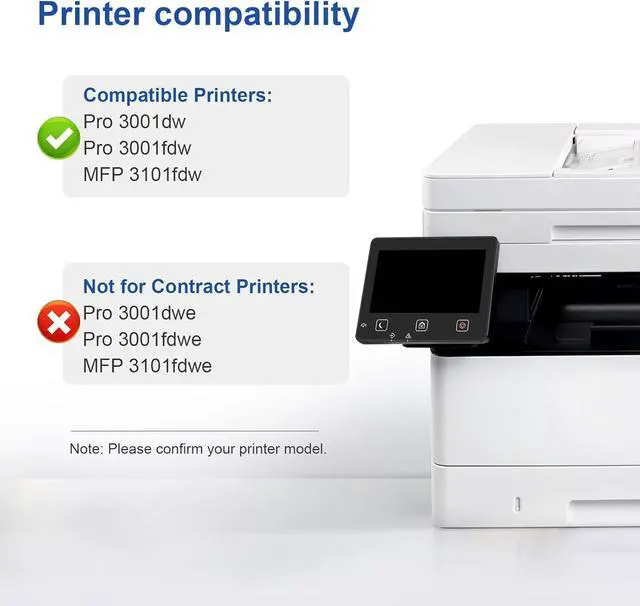 Compatible Model: Compatible for HP Pro 3001dw 3001fdw MFP 3101fdw Toner Printer