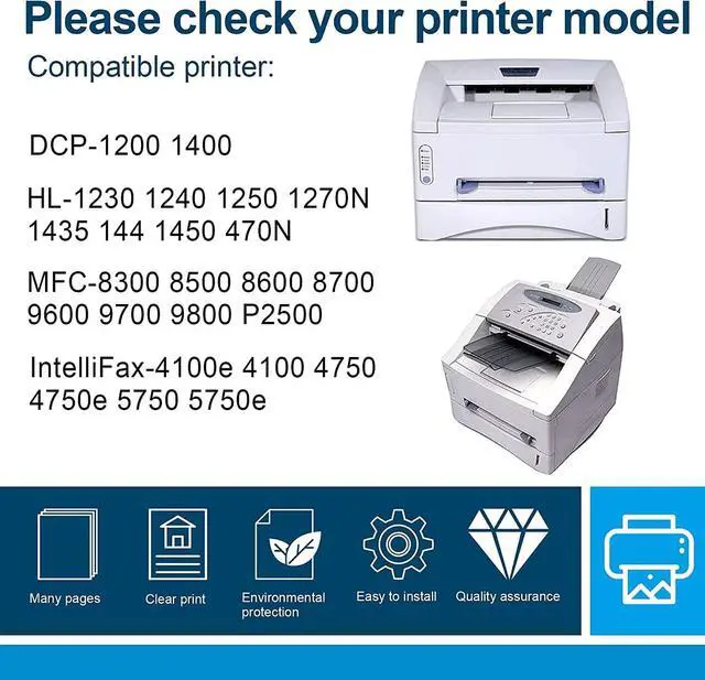 Compatible with Brother DCP-1200 1400 IntelliFax-4100e 4100 4750 4750e 5750 5750e HL-1230 1240 1250 1270N 1435 1440 1450 1470N MFC-8300 8500 8600 8700 9600 9700 9800 P2500 Printer
